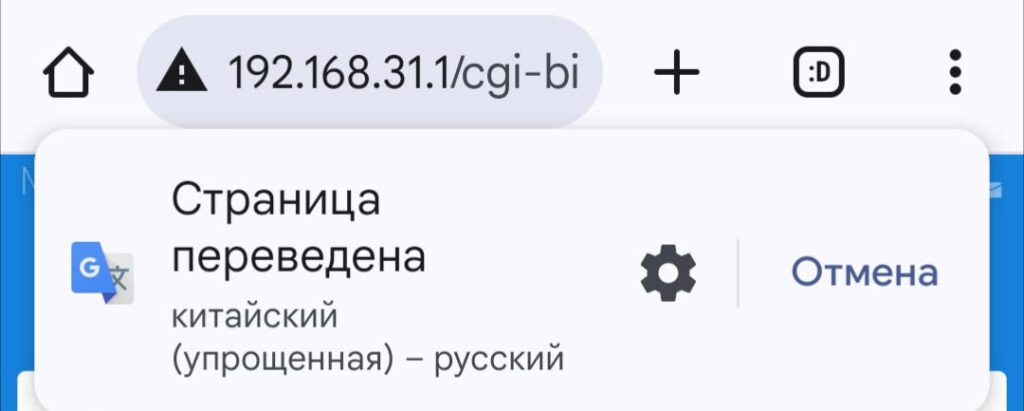Далее вы попадаете на страницу в роутера, она будет на китайском языке.